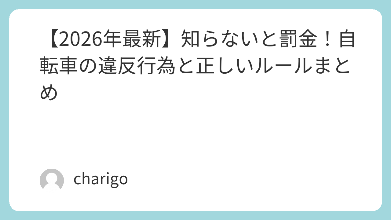交通ルールを「罰金から逃れるためのルール」と捉えるのではなく、自分と他人を守るための約束として理解すること。 それが、2026年を生きるすべての自転車利用者に必要な意識です。