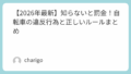 道路交通法第2条および第17条〜第63条の範囲で、自転車の通行ルールが細かく規定されています。 特に守るべきポイントは以下の通りです。 – 車道通行が原則(左側通行) – 信号・標識の遵守義務 – 夜間のライト点灯義務 – 飲酒運転の禁止 – 二人乗りや並走の禁止 これらのルールを守らないと、「指導警告」「交通切符」「罰金」などの処分を受ける可能性があります。 社会人として日々の通勤で自転車を利用する場合、「知らなかった」では済まされない交通責任を自覚することが大切です。