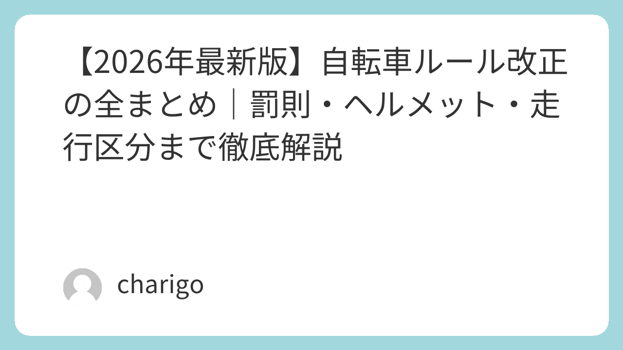 この3点を意識することで、改正がもたらす制度変化に対応しつつ、自転車ライフを安全・快適に維持できます。
